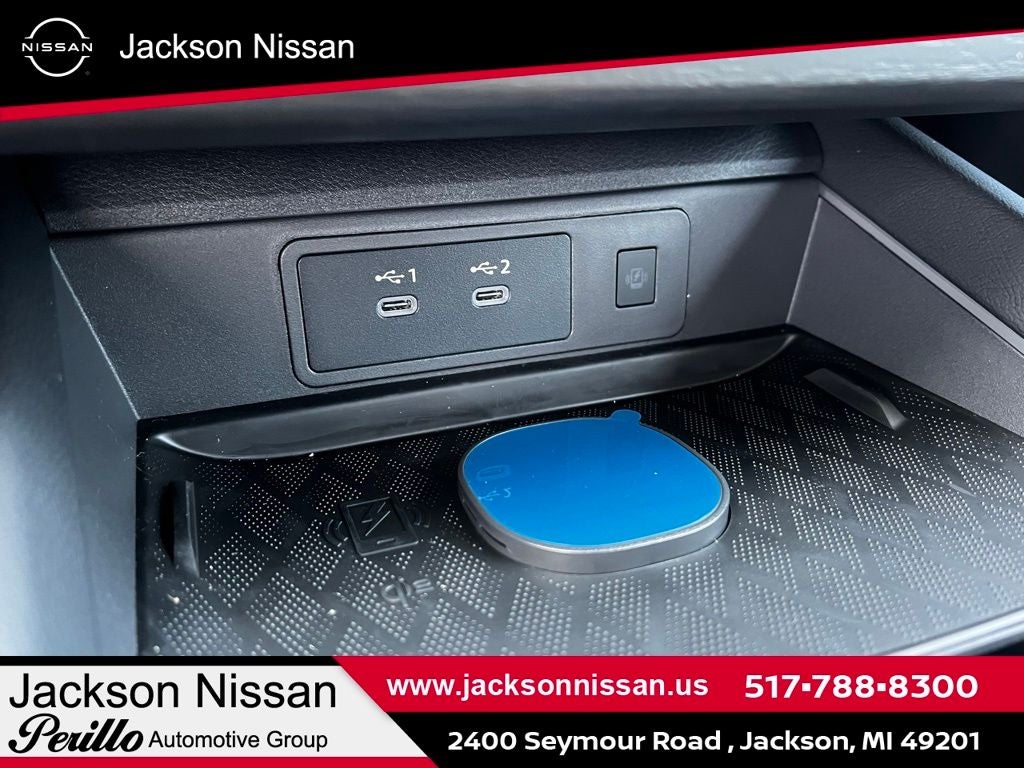 - Radio: NissanConnect -inc: 6 speakers (2 A-pillar, 2 front door, 2 rear door), 12.3" color touch-screen display, wireless Apple CarPlay, wireless Android Auto, 2 front and 2 rear USB type-C charge and data, SiriusXM w/360L, NissanConnect services powered by SiriusXM and 5G cellular connection