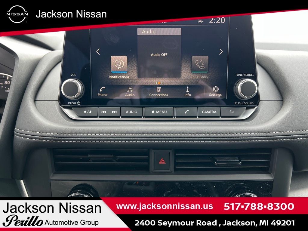 - Radio: AM/FM NissanConnect -inc: 6 speakers plus 2 tweeters, Apple CarPlay, Android Auto, 8" color touch screen display, Bluetooth®, 2 front USB type-C, Wi-Fi hotspot and NissanConnect Services powered by SiriusXM