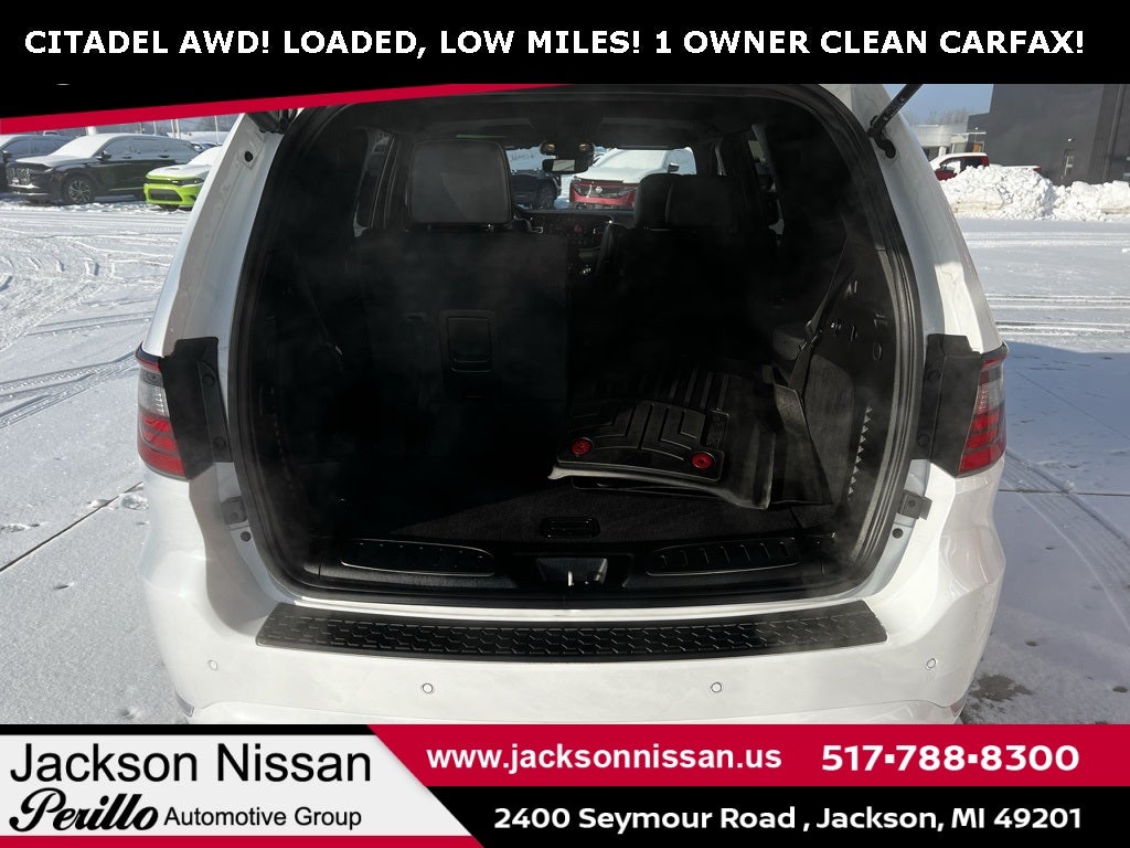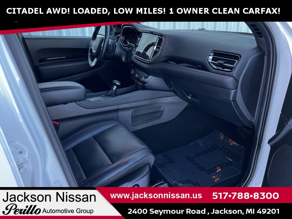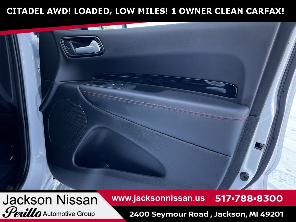 2024 Dodge Durango Citadel White Knuckle Clearcoat New Arrival, Call Today 517-788-8300, Loaded Loaded Loaded, All Regular Scheduled Maintenance Performed, Passed Thorough Dealer Inspection, Have Service Records, LIKE NEW!, Condition Rating 10/10, Amazing Color Combo, Low Miles!, Clean Carfax, Under Manufacture Warranty, REMOTE START, ANDROID AUTO / APPLE CARPLAY, BLIND SPOT WARNING, 3rd row seats: split-bench, 4-Wheel Disc Brakes, 9 Speakers, ABS brakes, Air Conditioning, Alloy wheels, AM/FM radio: SiriusXM w/360L, Anodized Platinum Appearance Package, Apple CarPlay/Android Auto, Audio memory, Auto High-beam Headlights, Auto-dimming door mirrors, Auto-dimming Rear-View mirror, Auto-leveling suspension, Automatic temperature control, Brake assist, Bumpers: body-color, Compass, Delay-off headlights, Driver door bin, Driver vanity mirror, Dual front impact airbags, Dual front side impact airbags, Electronic Stability Control, Emergency communication system, Four wheel independent suspension, Front anti-roll bar, Front Bucket Seats, Front Center Armrest w/Storage, Front dual zone A/C, Front reading lights, Fully automatic headlights, Garage door transmitter, Heated door mirrors, Heated front seats, Heated rear seats, Heated steering wheel, Illuminated entry, Knee airbag, Leather steering wheel, Leather Trimmed Bucket Seats, Low tire pressure warning, Memory seat, Navigation system: TomTom, Occupant sensing airbag, Outside temperature display, Overhead airbag, Overhead console, Panic alarm, ParkView Rear Back-Up Camera, Passenger door bin, Passenger vanity mirror, Platinum Mirrors Caps, Power door mirrors, Power driver seat, Power Liftgate, Power moonroof, Power passenger seat, Power steering, Power windows, Quick Order Package 22P, Radio data system, Radio: Uconnect 5 Nav w/10.1 Display, Rain sensing wipers, Rear air conditioning, Rear anti-roll bar, Rear reading lights, Rear seat center armrest, Rear window defroster, Rear window wiper, Remote keyless entry, Roof rack, Security system, Speed control, Speed-sensing steering, Speed-Sensitive Wipers, Split folding rear seat, Spoiler, Steering wheel mounted audio controls, Tachometer, Telescoping steering wheel, Tilt steering wheel, Traction control, Trip computer, Turn signal indicator mirrors, Variably intermittent wipers, Ventilated front seats, Voltmeter, Wheels: 20 x 8.0 Satin Carbon Aluminum.